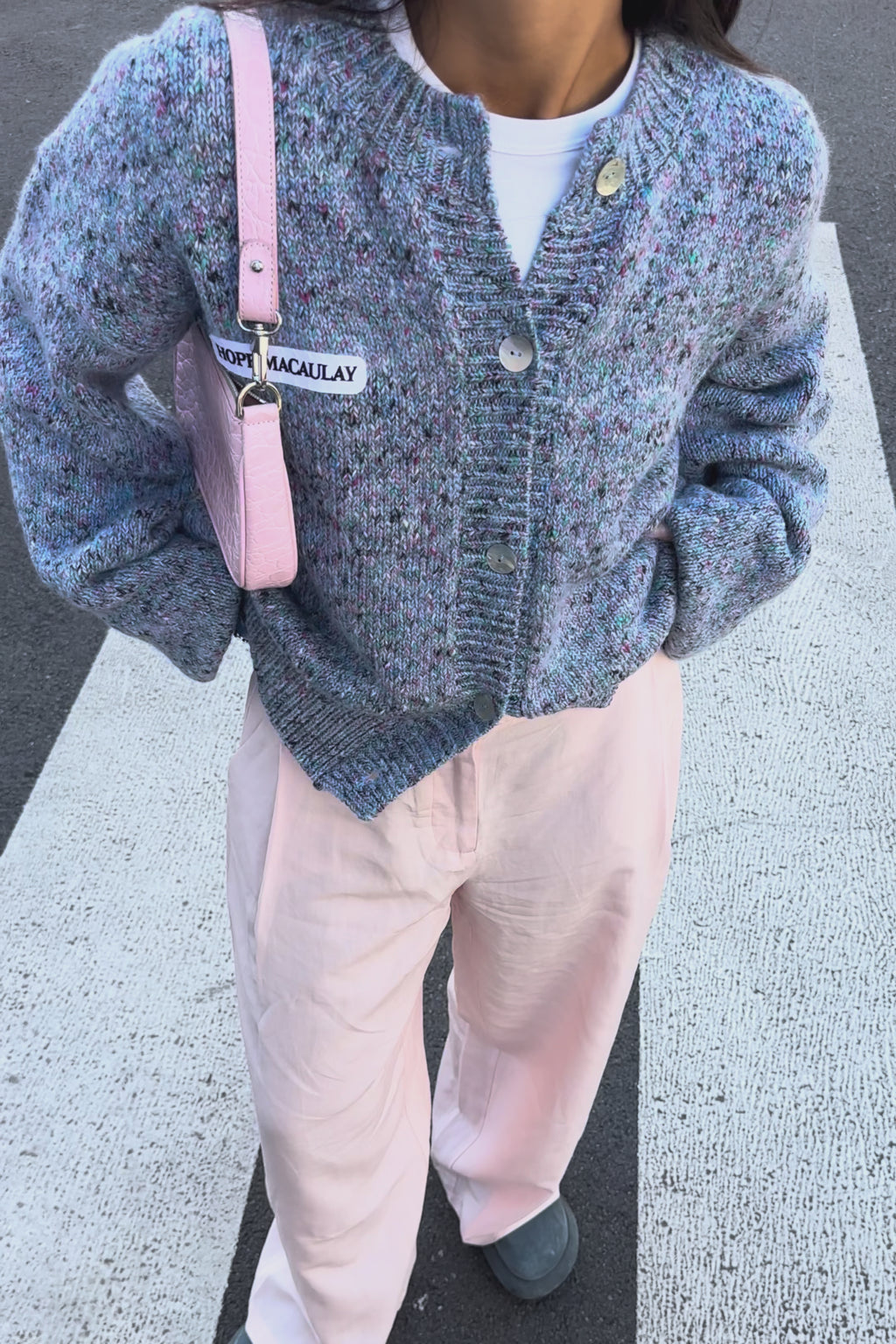 Introducing a new style of cardigan - the mélange knit cardigan. Featuring a blend of superfine alpaca yarn and recycled materials.