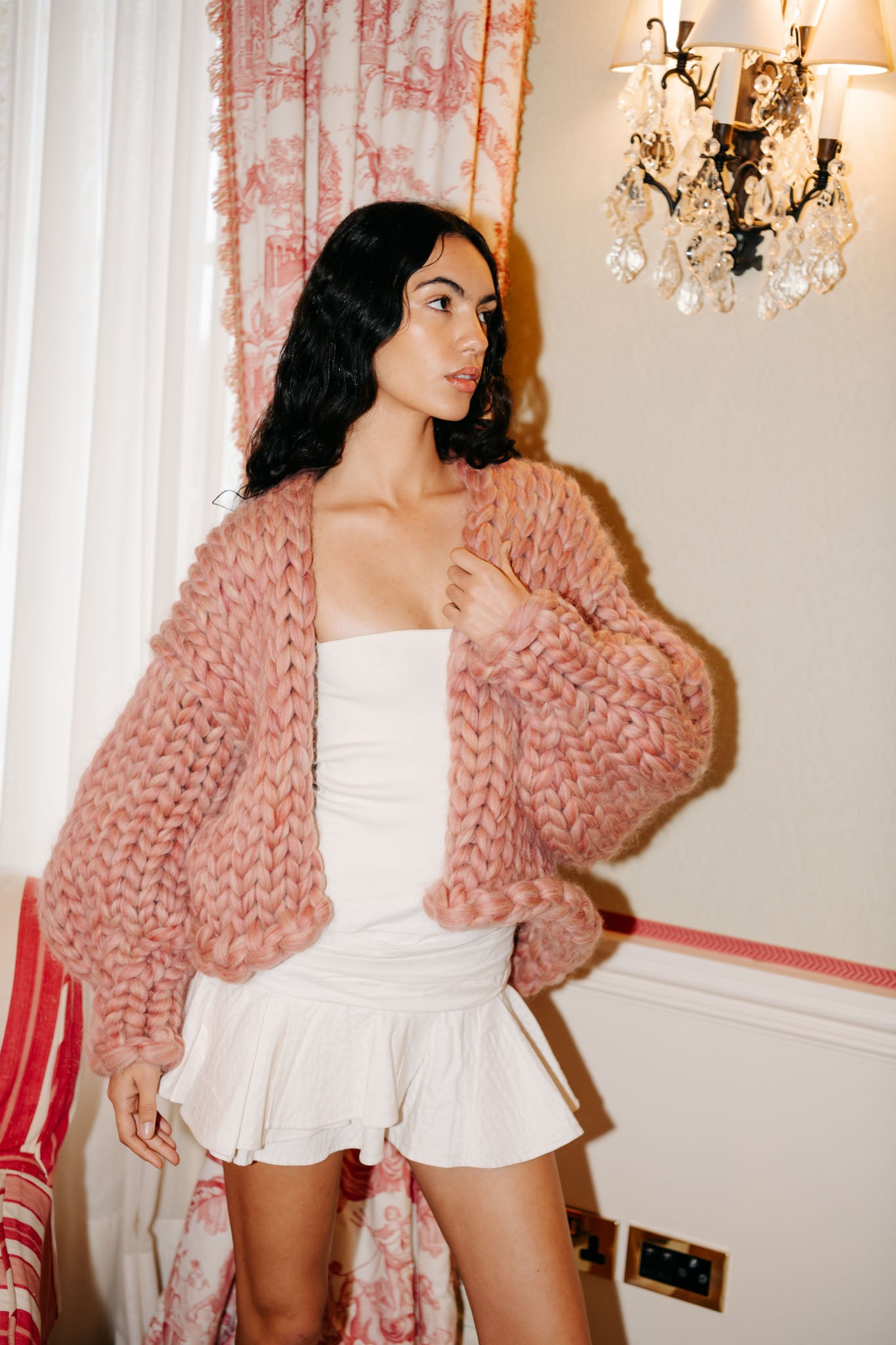 Design details: Our signature colossal knit stitch with playful balloon sleeves in a dreamy pink Irish wool blend.