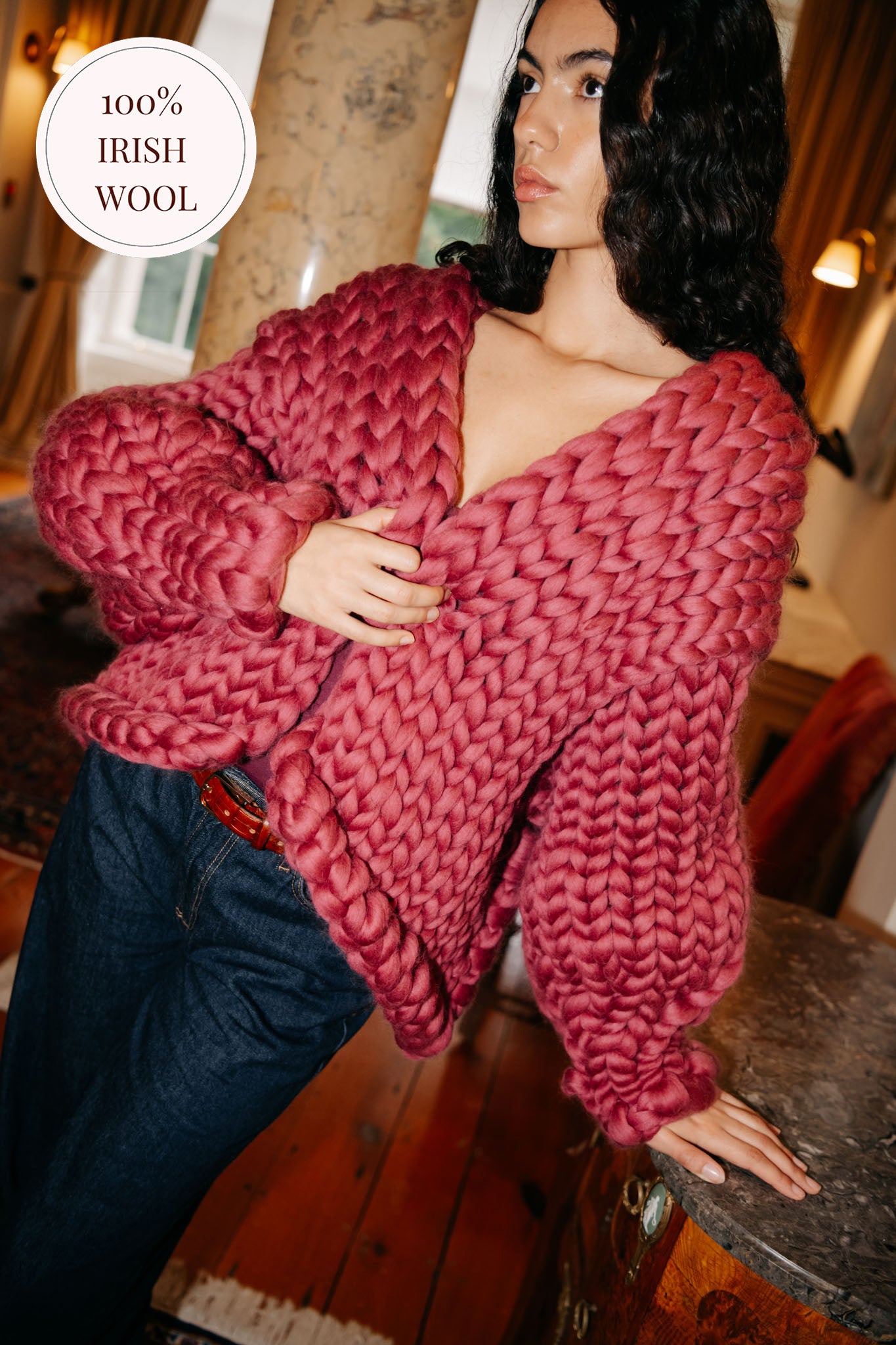 Introducing the Mulberry Colossal Knit Cardigan, crafted exclusively from pure Irish wool. A classic statement piece in our famous, signature design.