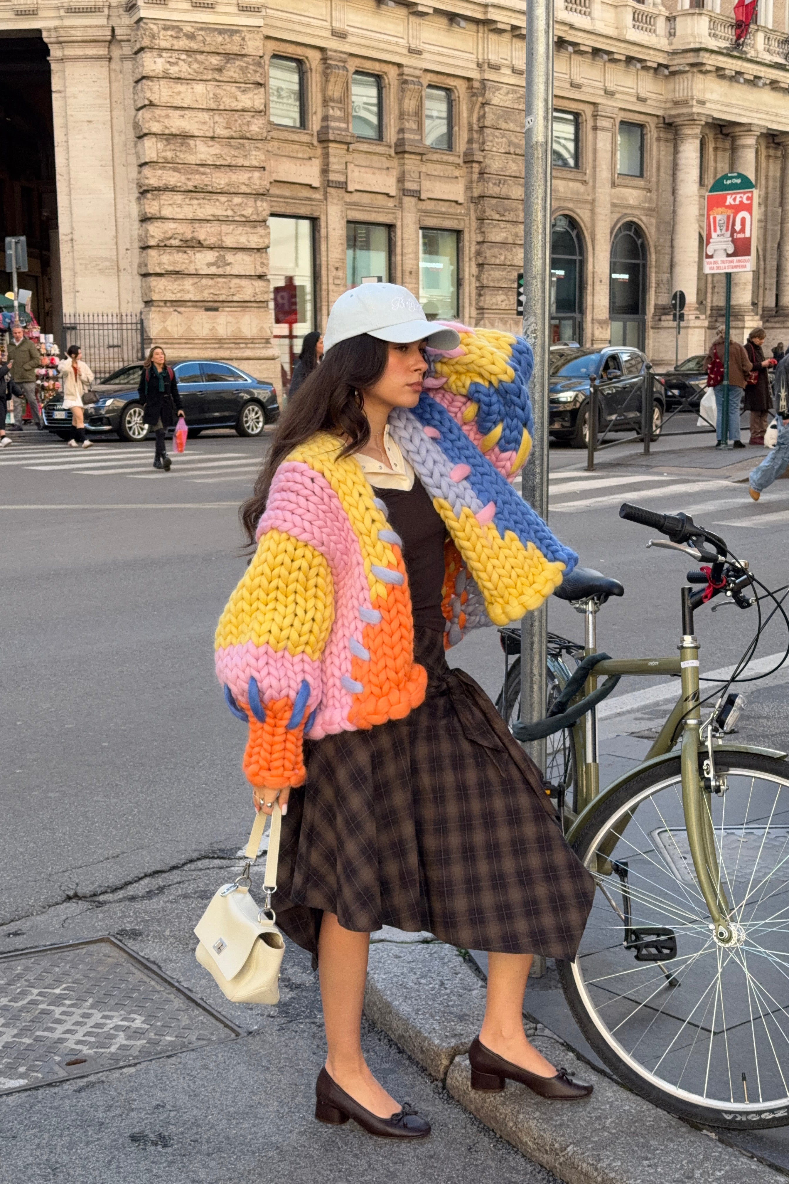 Introducing the Colourful Colossal Knit Cardigan. Our best selling, signature statement piece, now available in a new updated version, handmade from soft 100% wool.