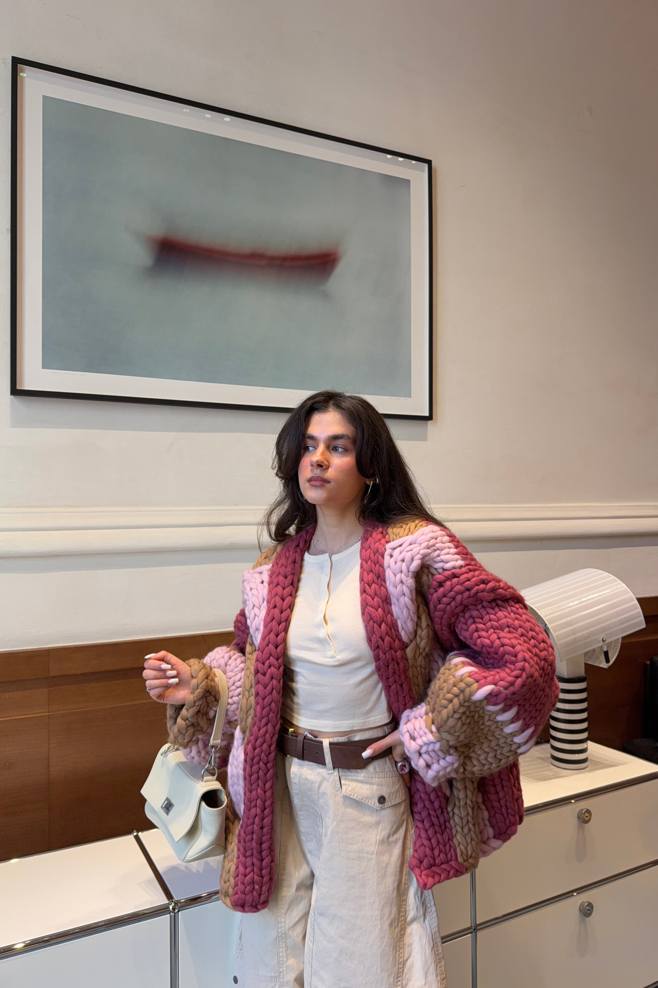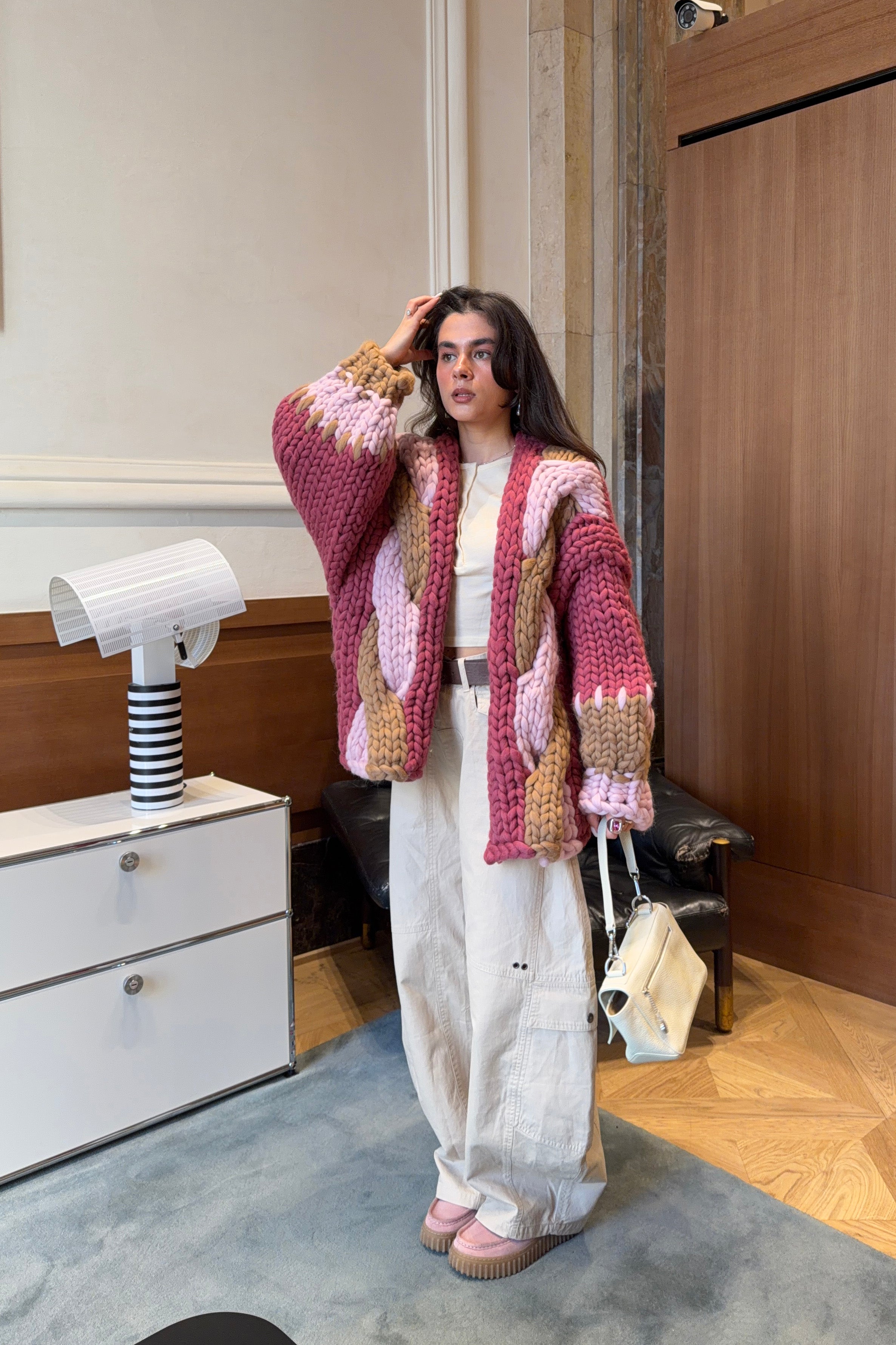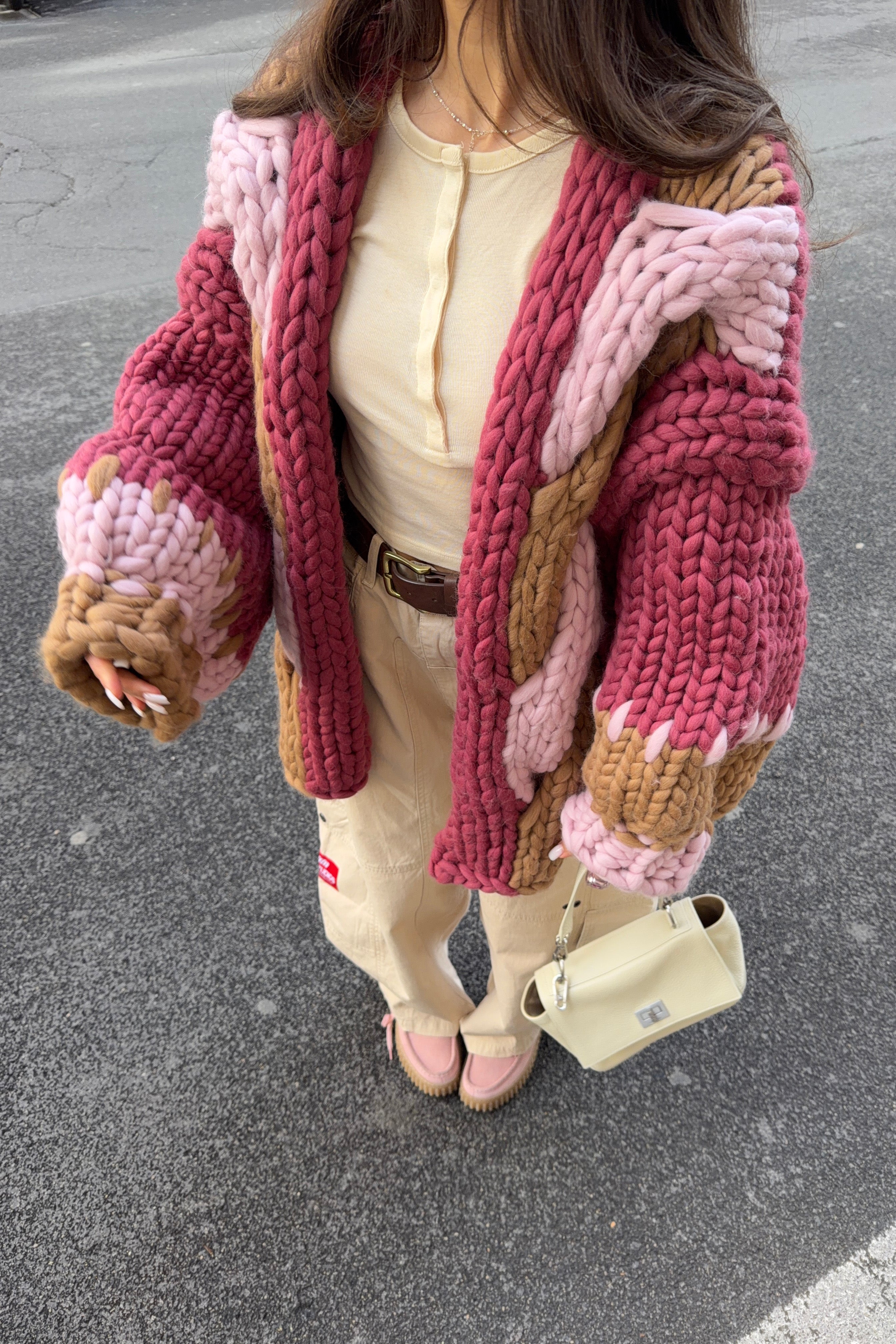 ラブチャンキーニットセーターは、最高級メリノウールを使用し、北アイルランドのニット職人チームが丹精込めて丁寧に編み上げた一着です。このチャンキーニットは、着心地抜群のボックスシルエットで、手刺繍のハートモチーフがアクセントになっています。