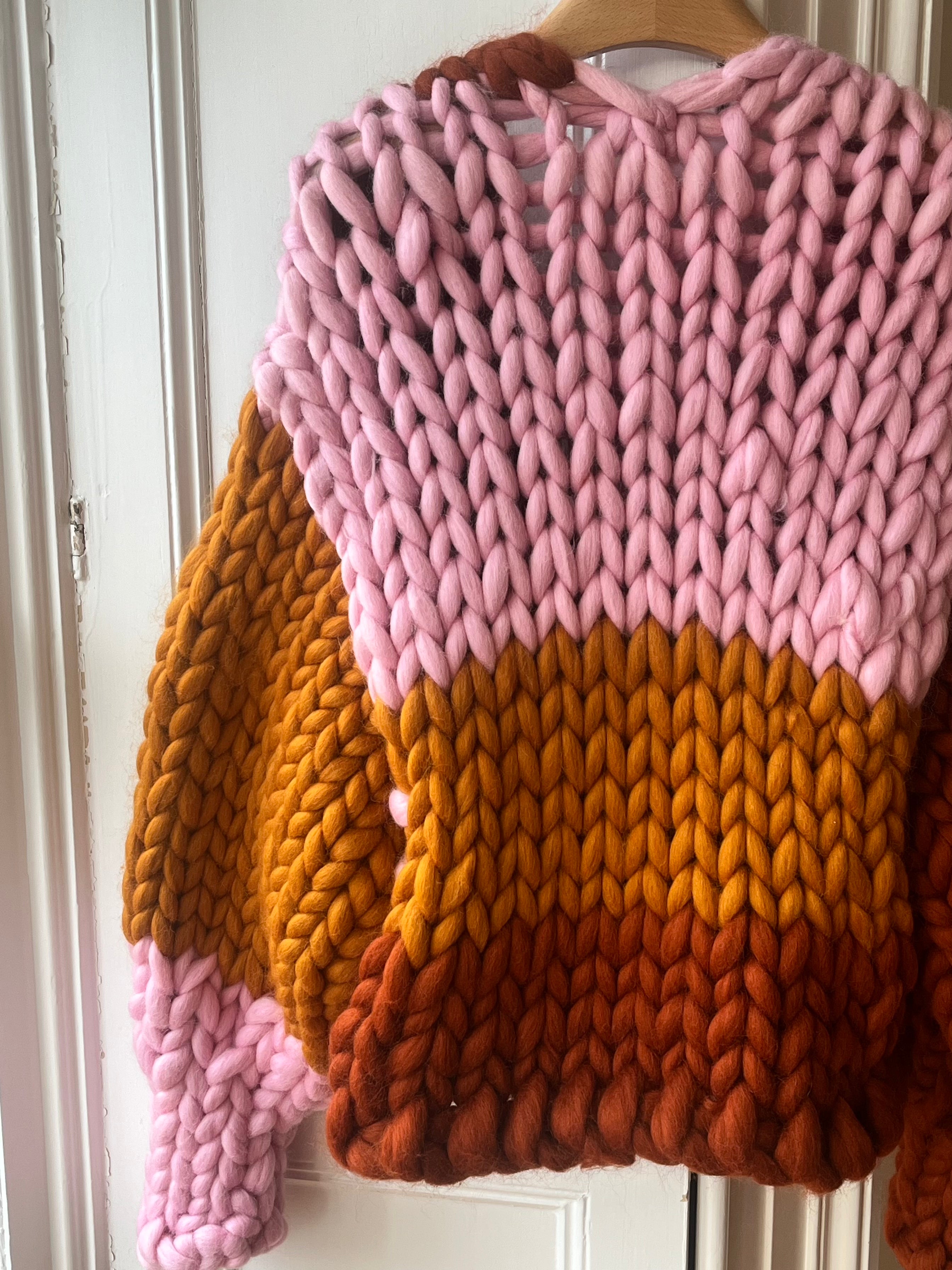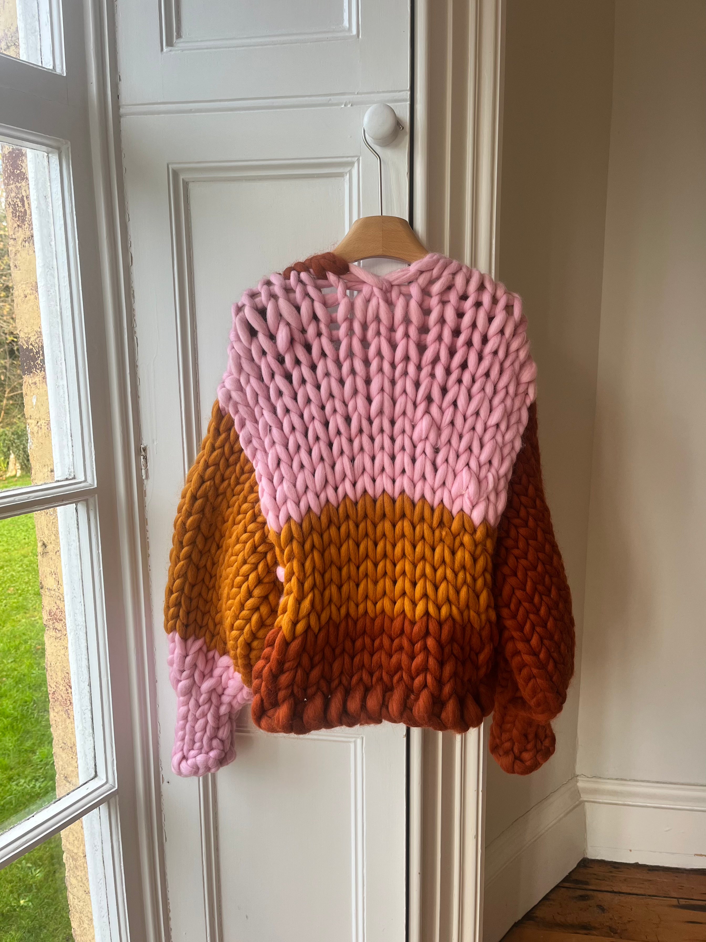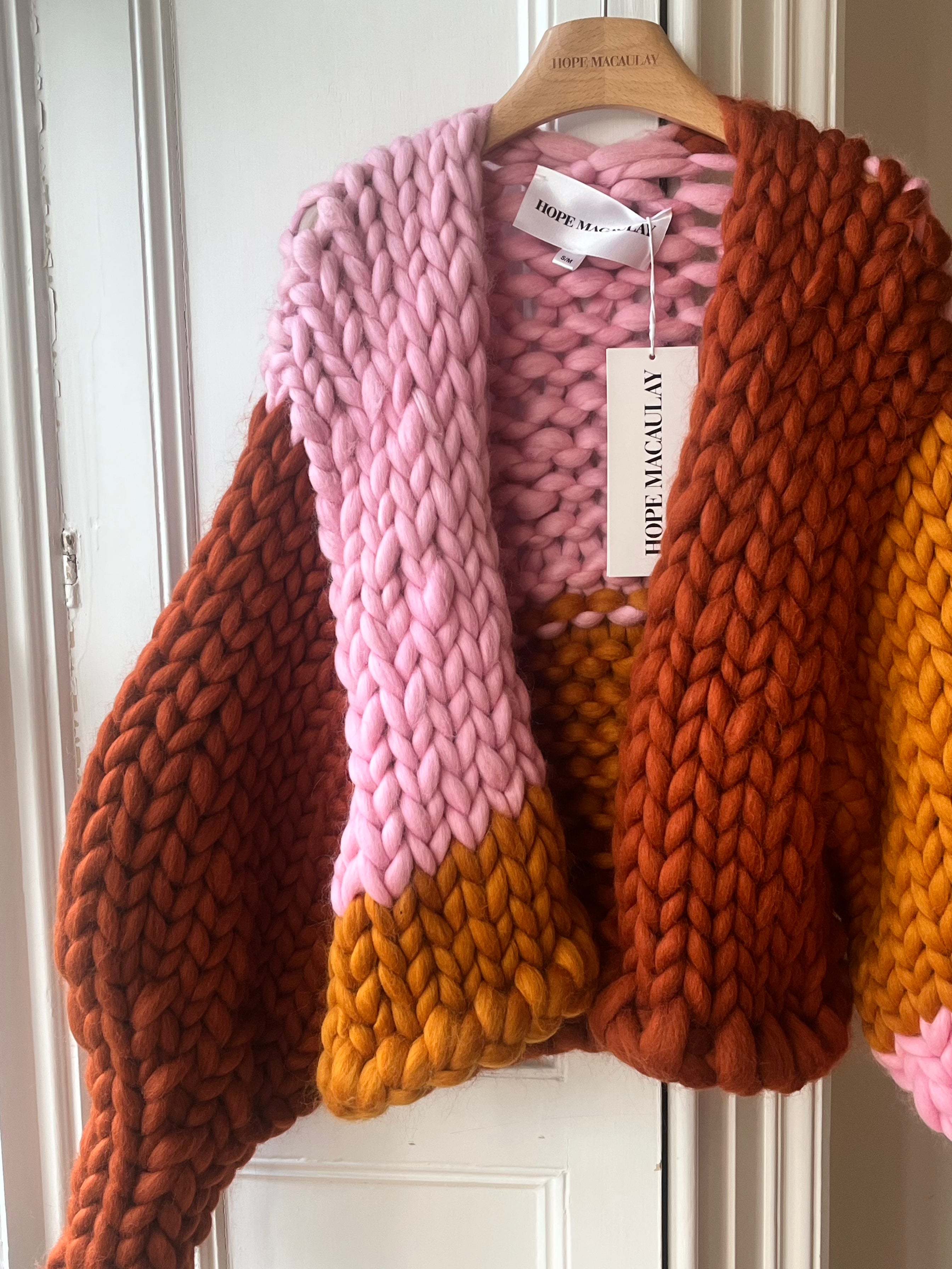 マルチカラーのストライプがデザインされた、定番のコロッサルニットカーディガン。北アイルランドのニット職人チームが、最高級ウールを使用し、丁寧に手編みで仕上げています。この極上の柔らかさは、ゆったりとしたボックスフィットとボリュームのあるバルーンスリーブが特徴。
