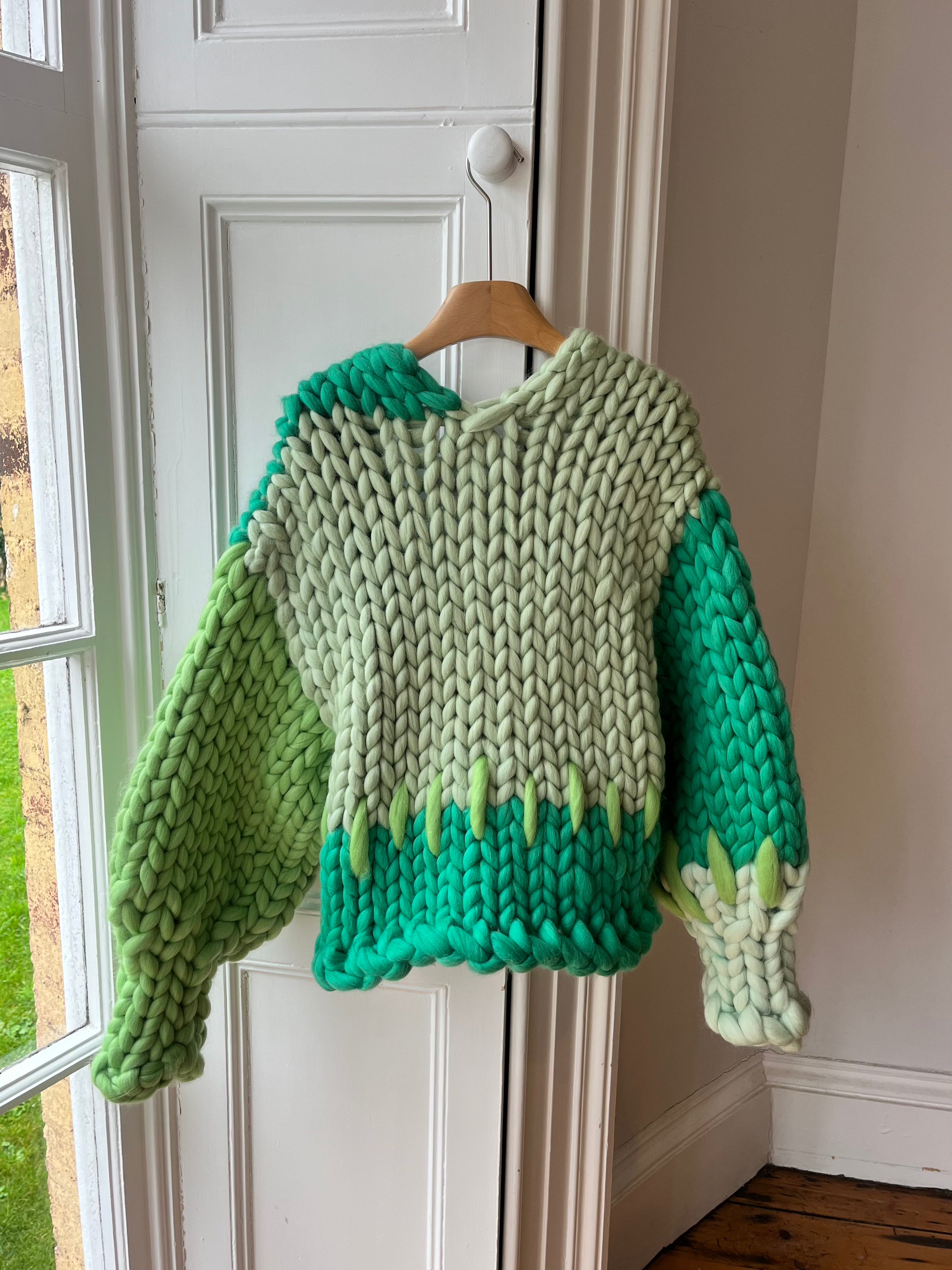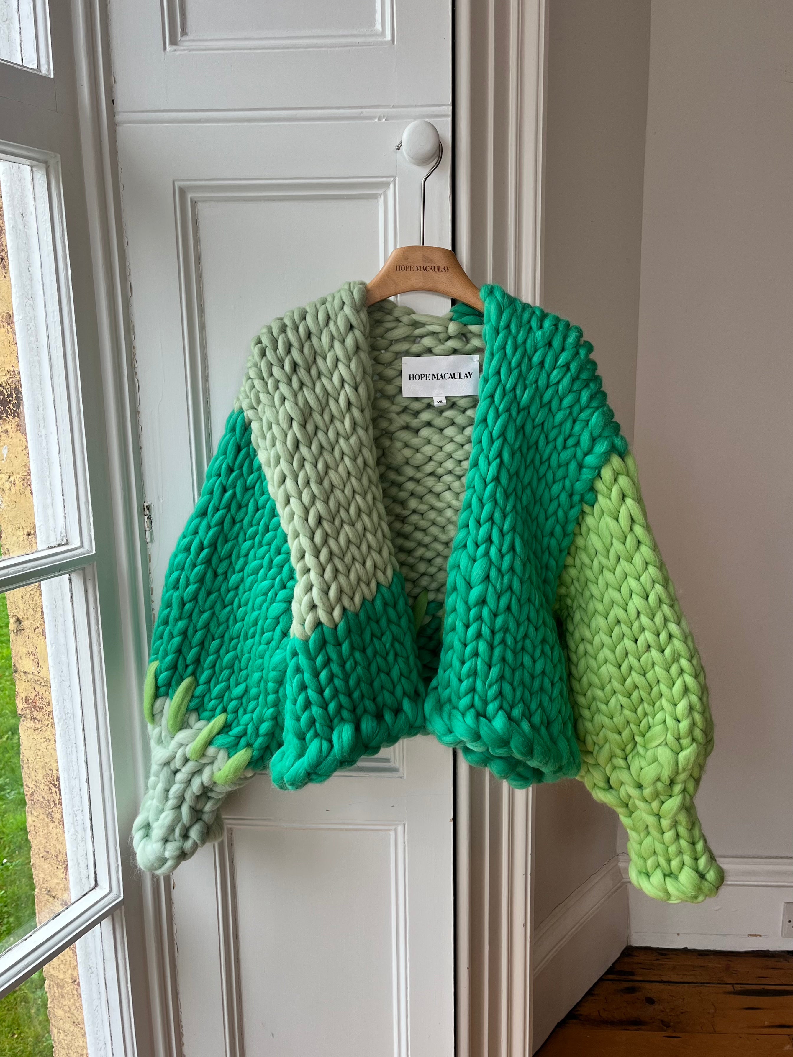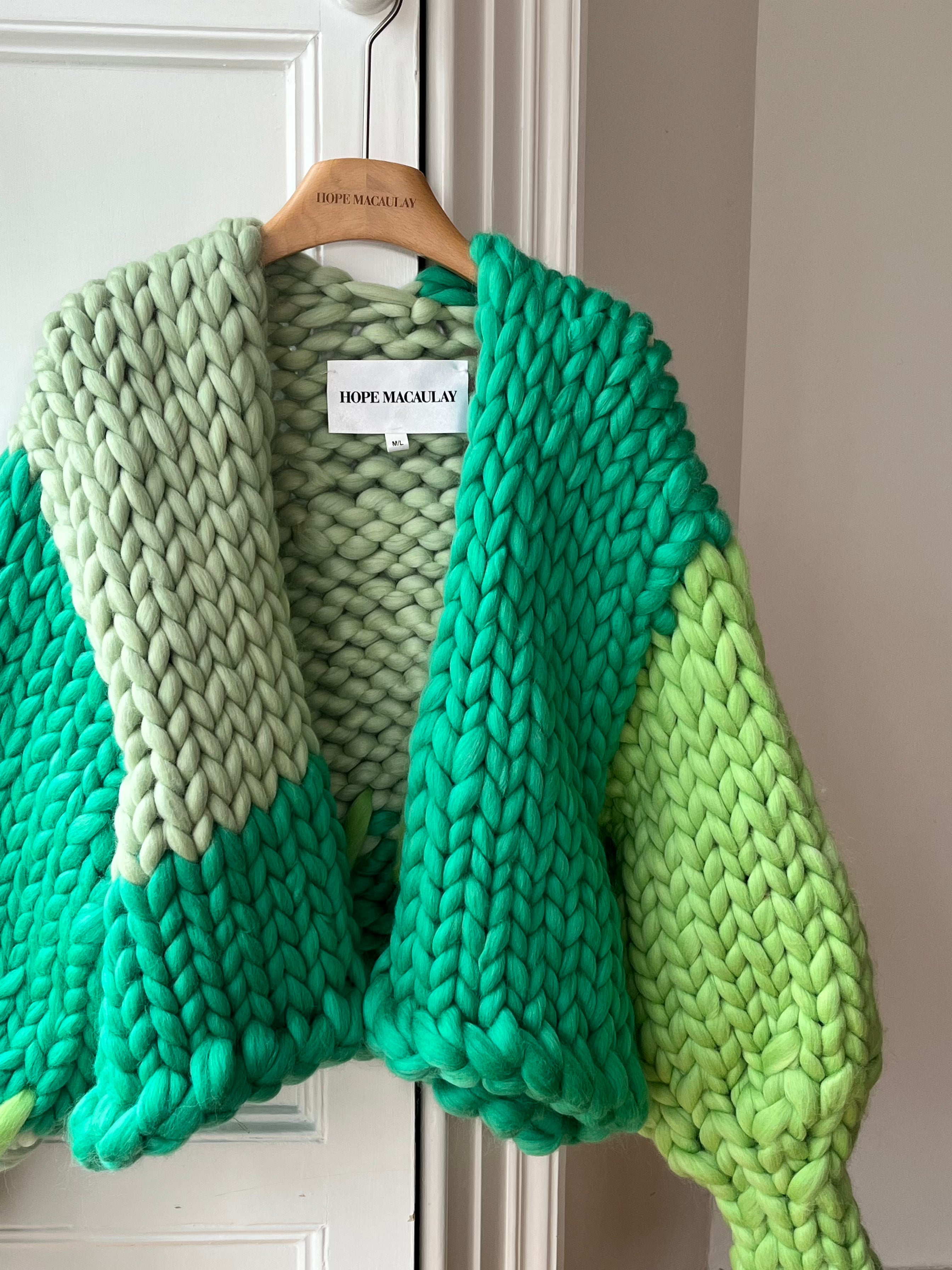 マルチカラーのストライプがデザインされた、定番のコロッサルニットカーディガン。北アイルランドのニット職人チームが、最高級ウールを使用し、丁寧に手編みで仕上げています。この極上の柔らかさは、ゆったりとしたボックスフィットとボリュームのあるバルーンスリーブが特徴。