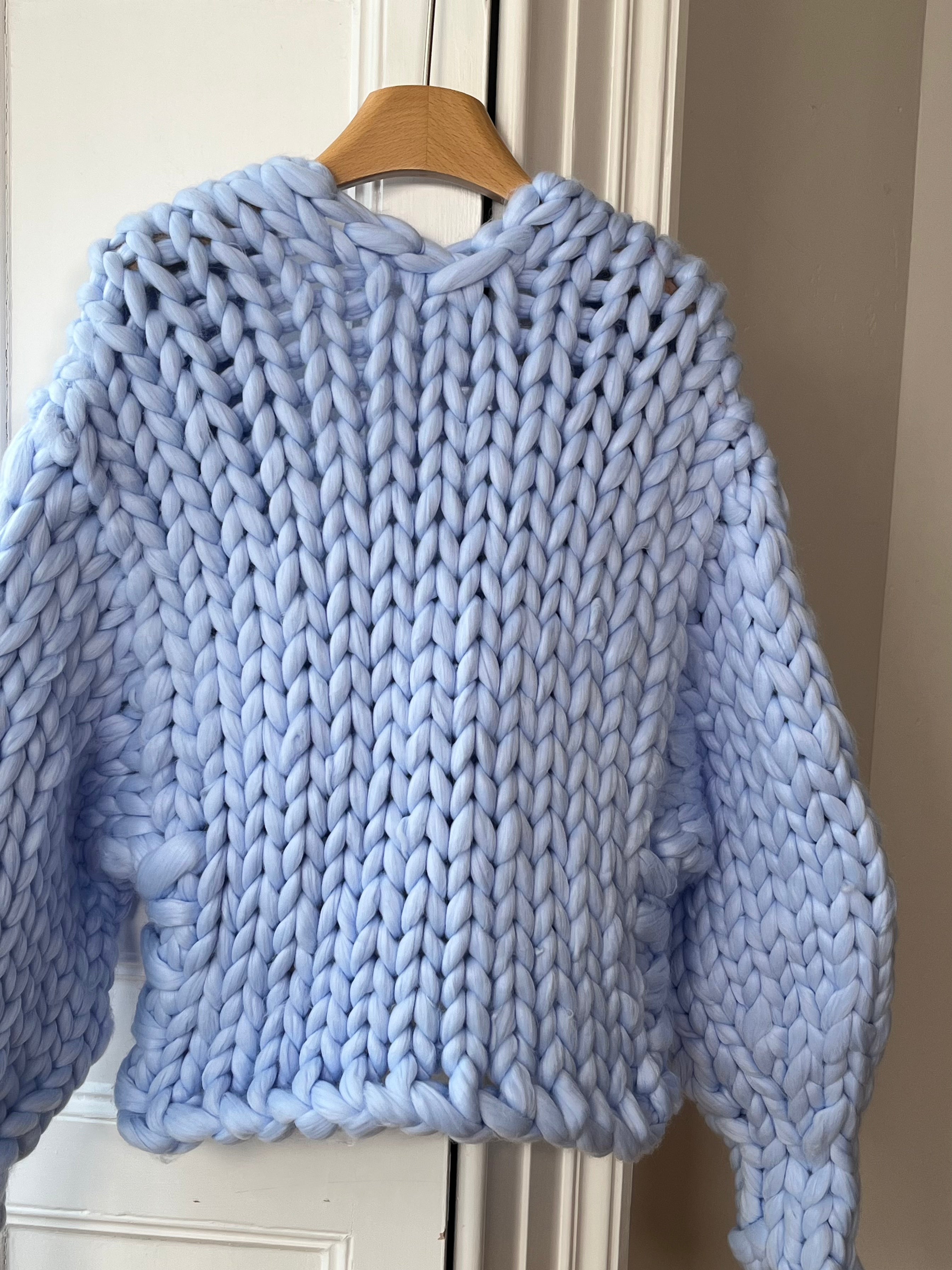 マルチカラーのストライプがデザインされた、定番のコロッサルニットカーディガン。北アイルランドのニット職人チームが、最高級ウールを使用し、丁寧に手編みで仕上げています。この極上の柔らかさは、ゆったりとしたボックスフィットとボリュームのあるバルーンスリーブが特徴。