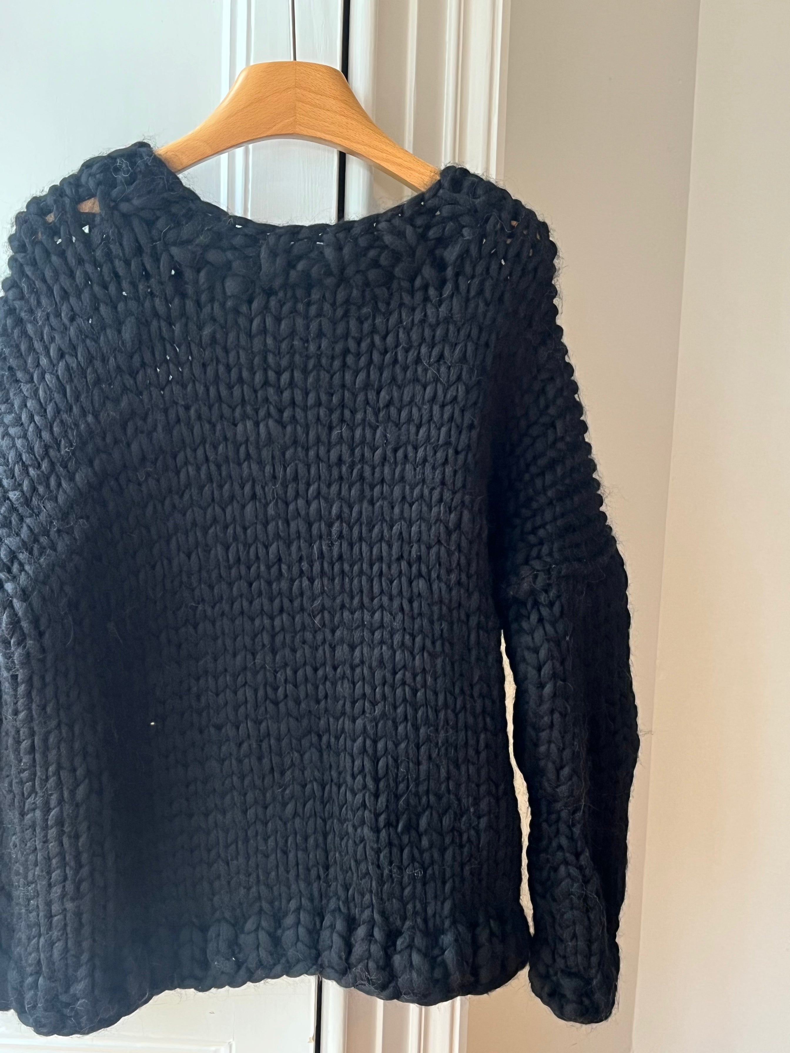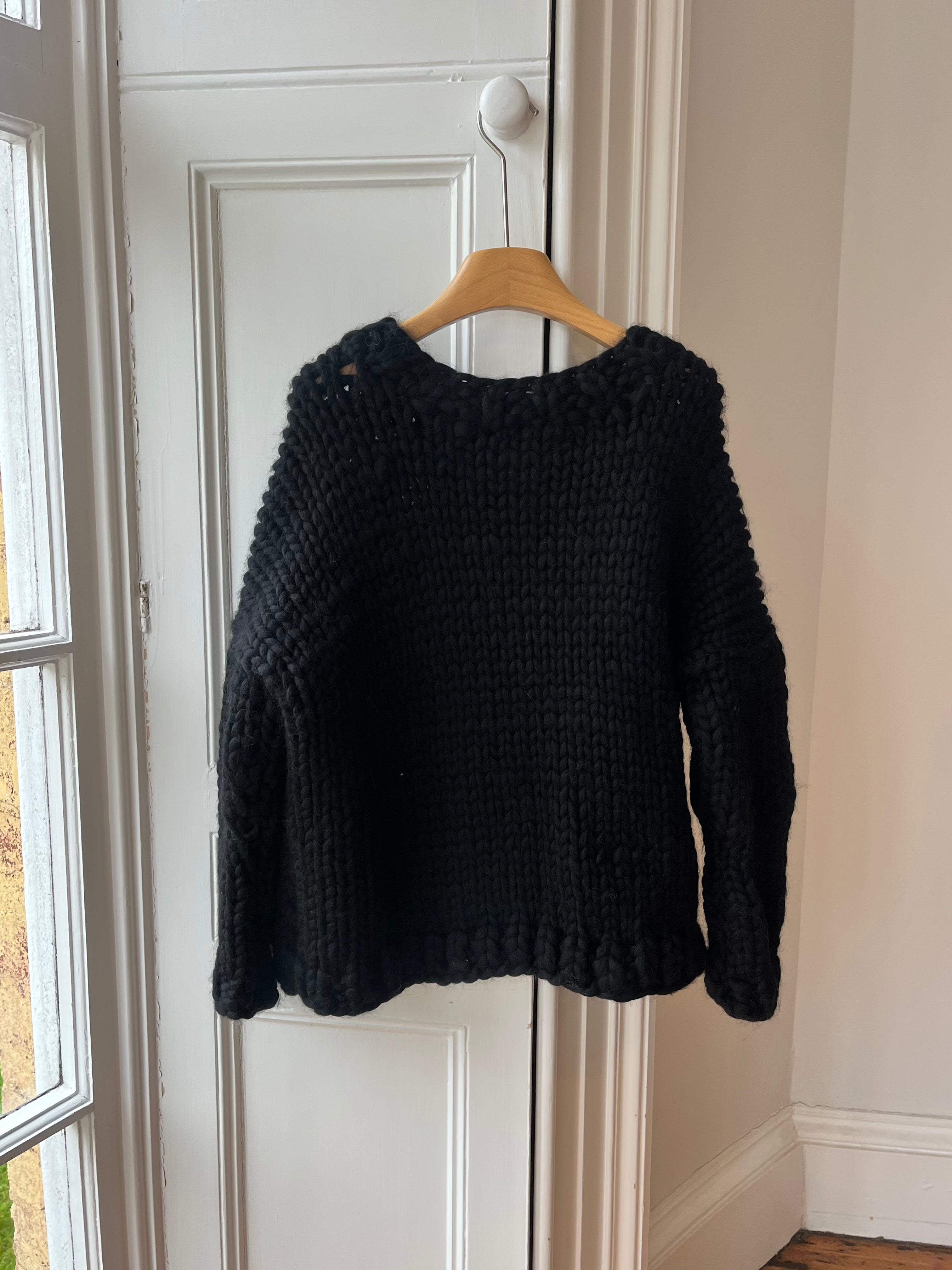 マルチカラーのストライプがデザインされた、定番のコロッサルニットカーディガン。北アイルランドのニット職人チームが、最高級ウールを使用し、丁寧に手編みで仕上げています。この極上の柔らかさは、ゆったりとしたボックスフィットとボリュームのあるバルーンスリーブが特徴。