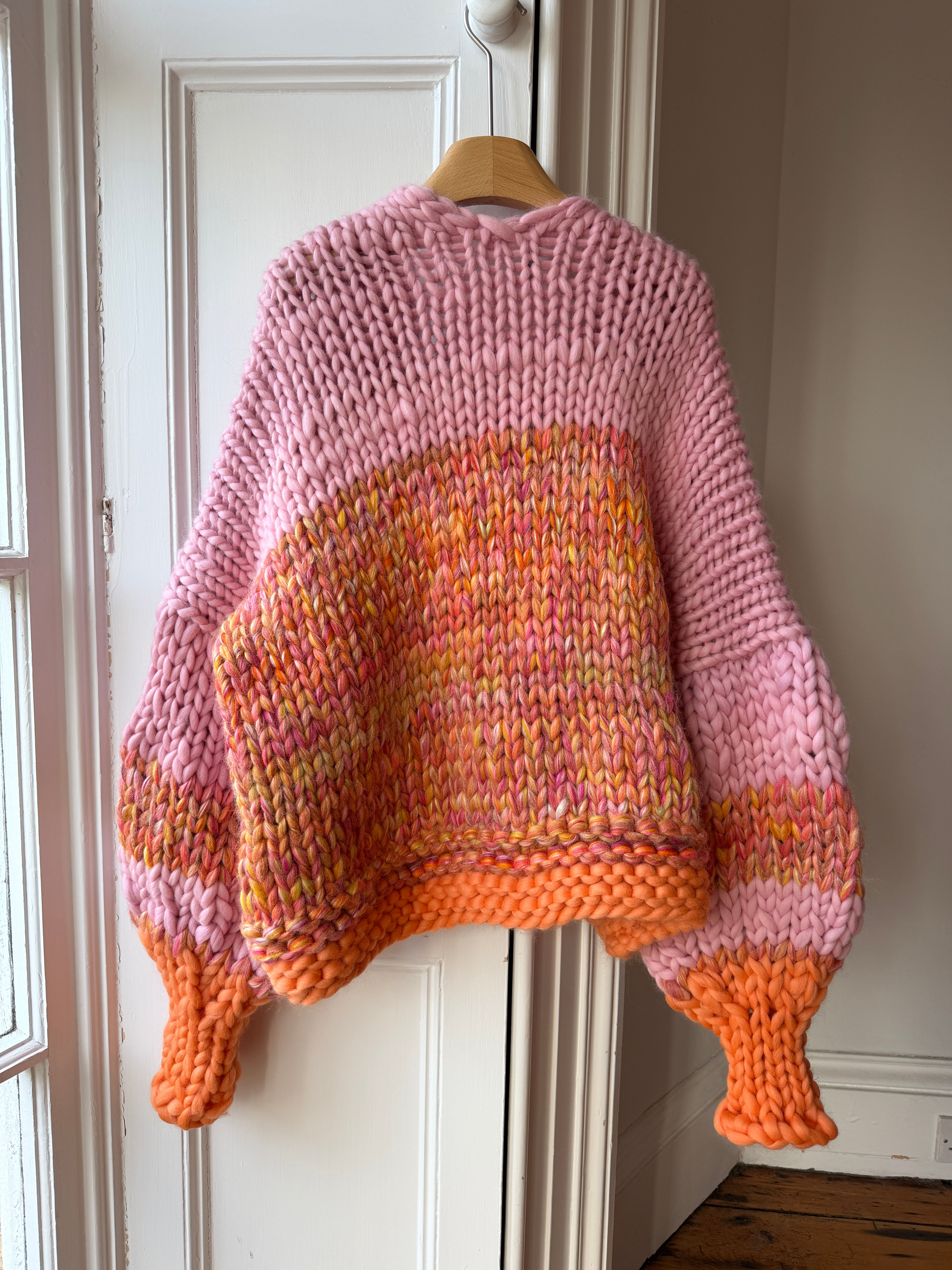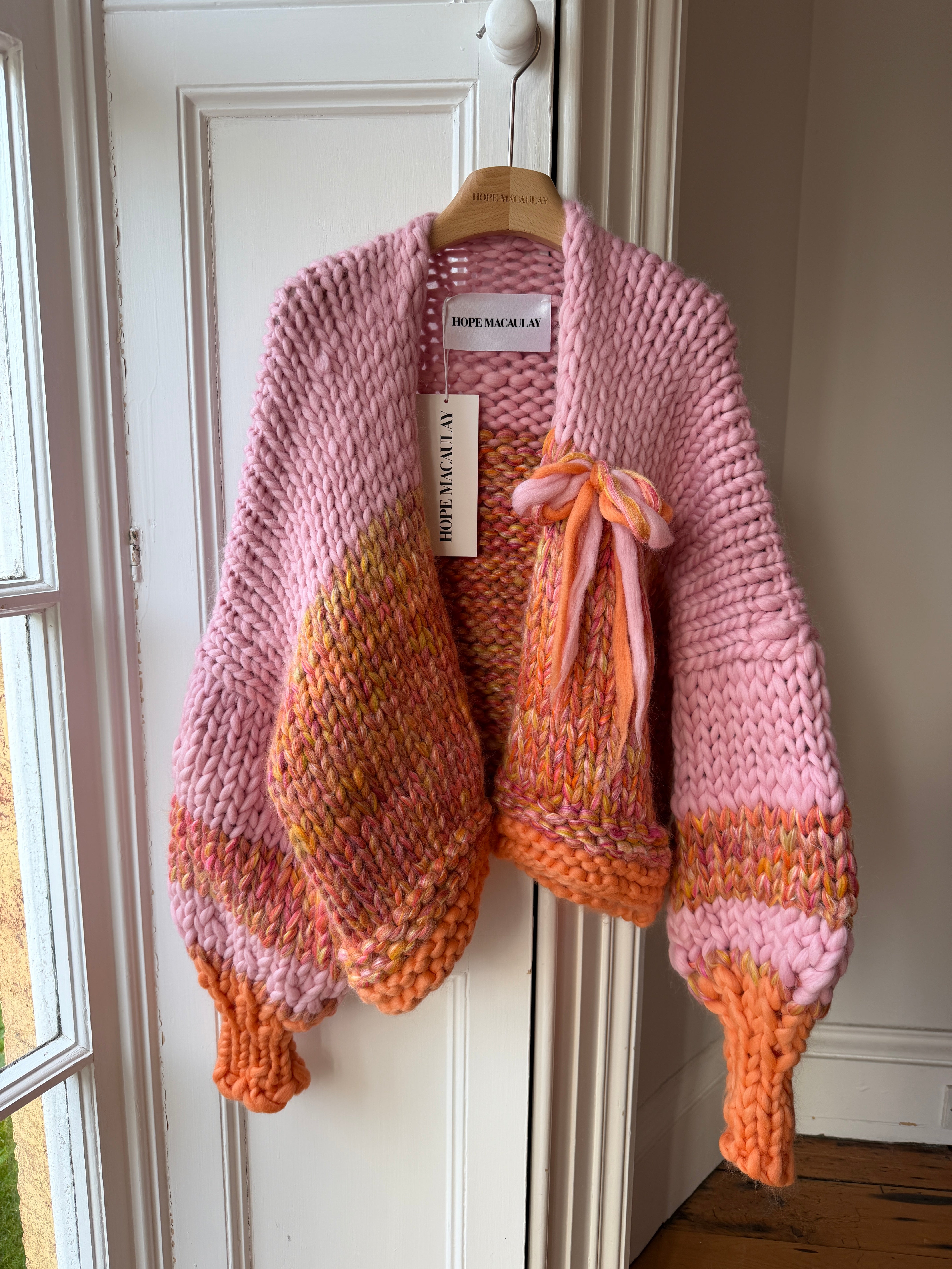 Created through our zero-waste initiative, each cardigan is individually handmade using leftover yarn. Styled in our timeless signature design, this is a special chance to bring home a one-off piece with its own story.