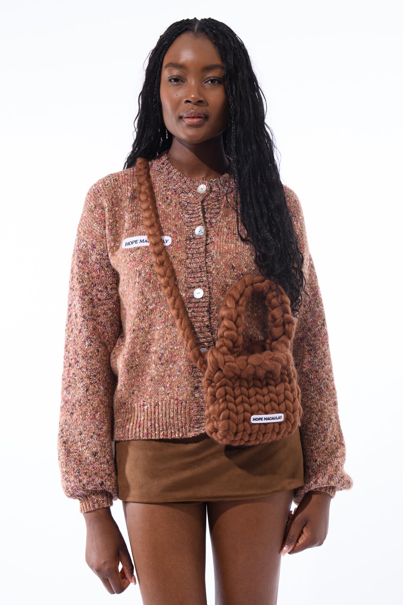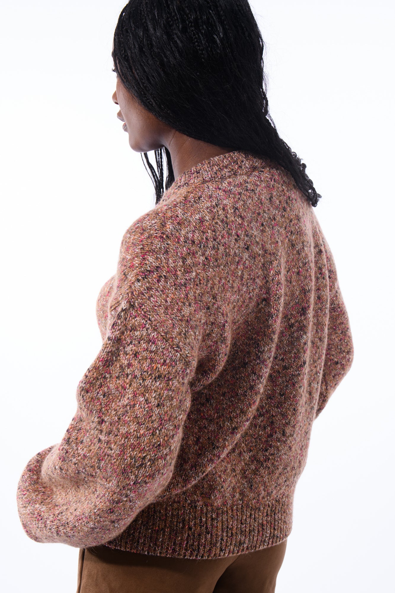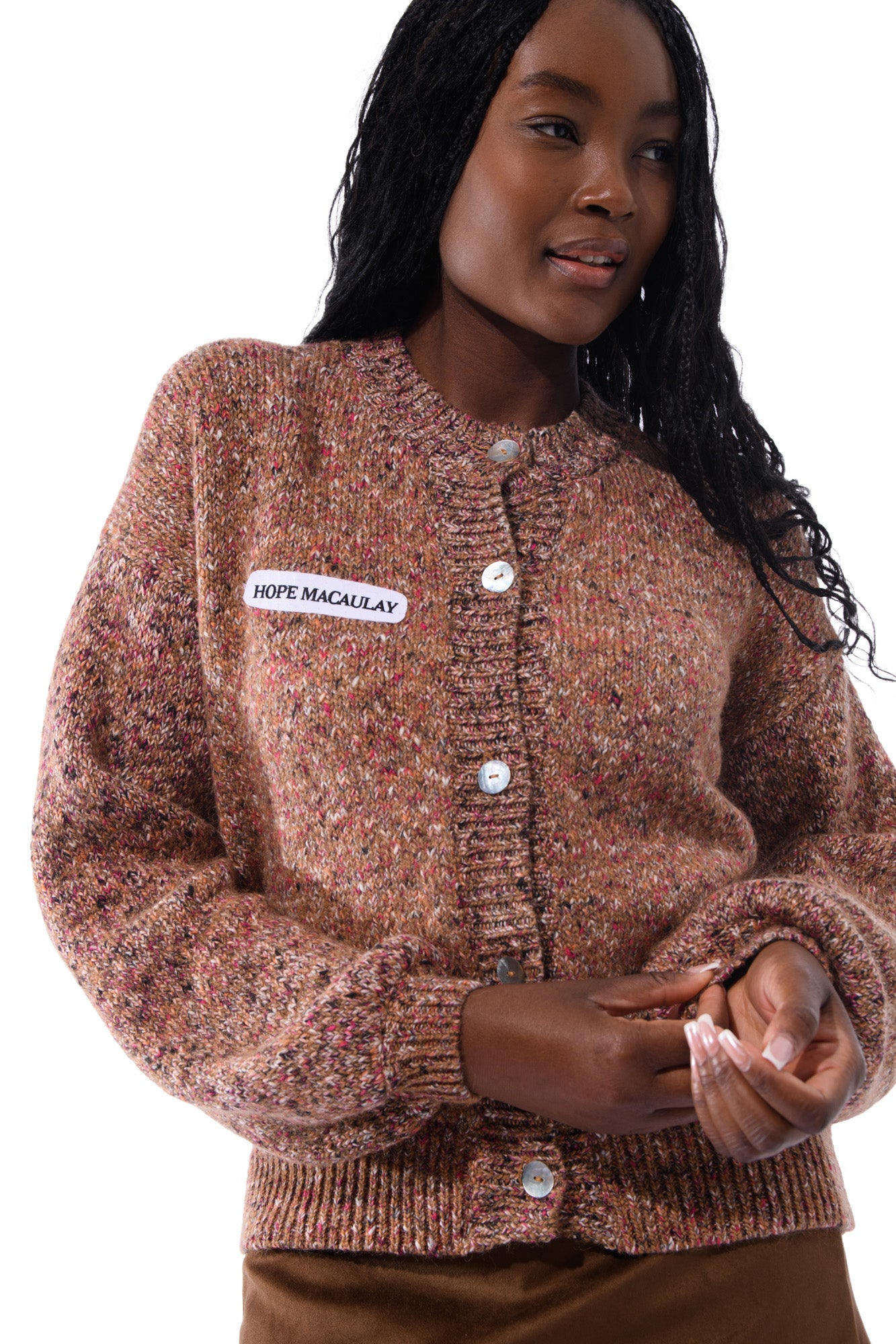 Introducing a new style of cardigan - the mélange knit cardigan. Featuring a blend of superfine alpaca yarn and recycled materials.