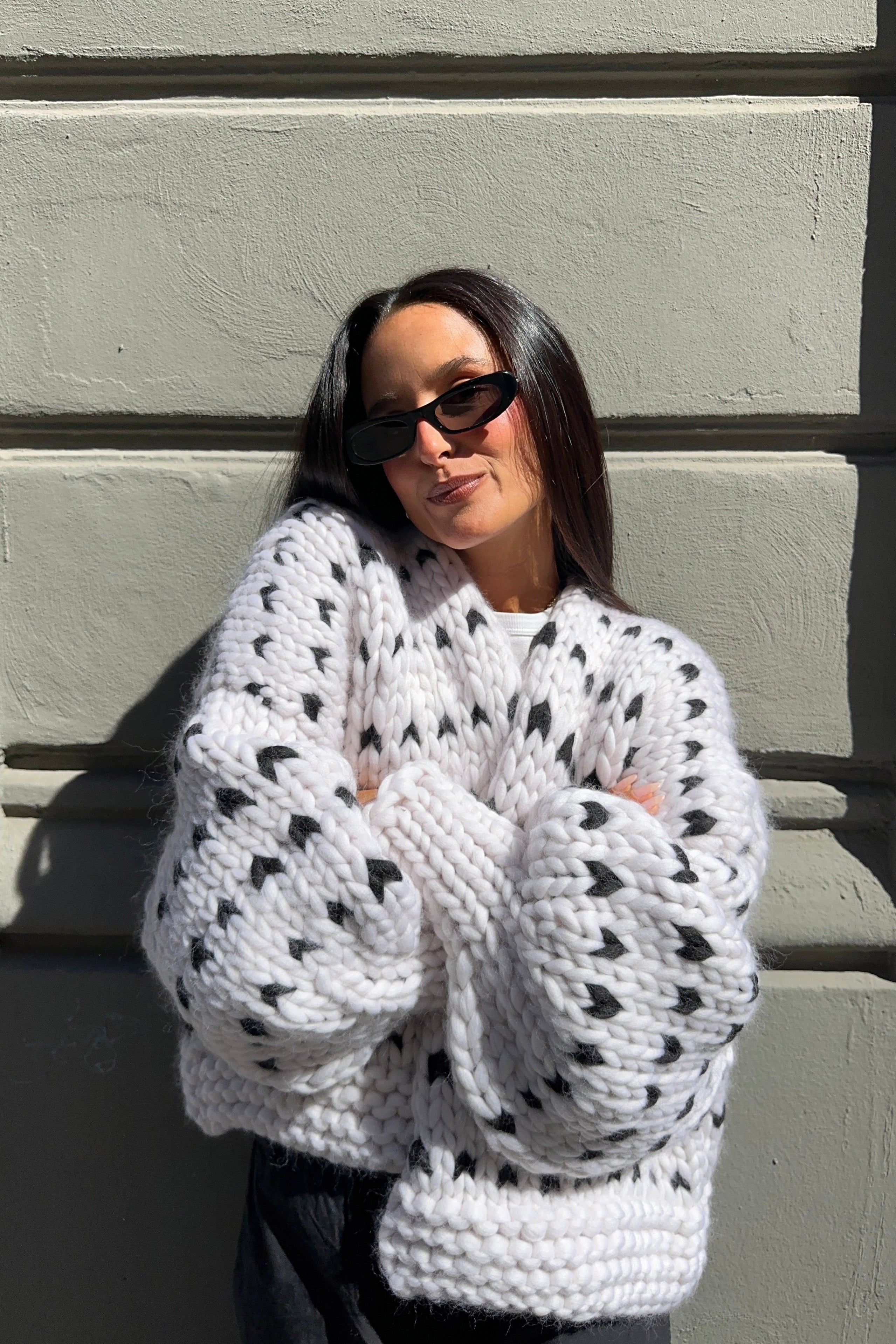 The Dottie Polka Dot Chunky Knit Sweater is intricately handmade using the highest quality merino wool. Featuring this season's favourite polka dot design, knitted intricately in intarsia.