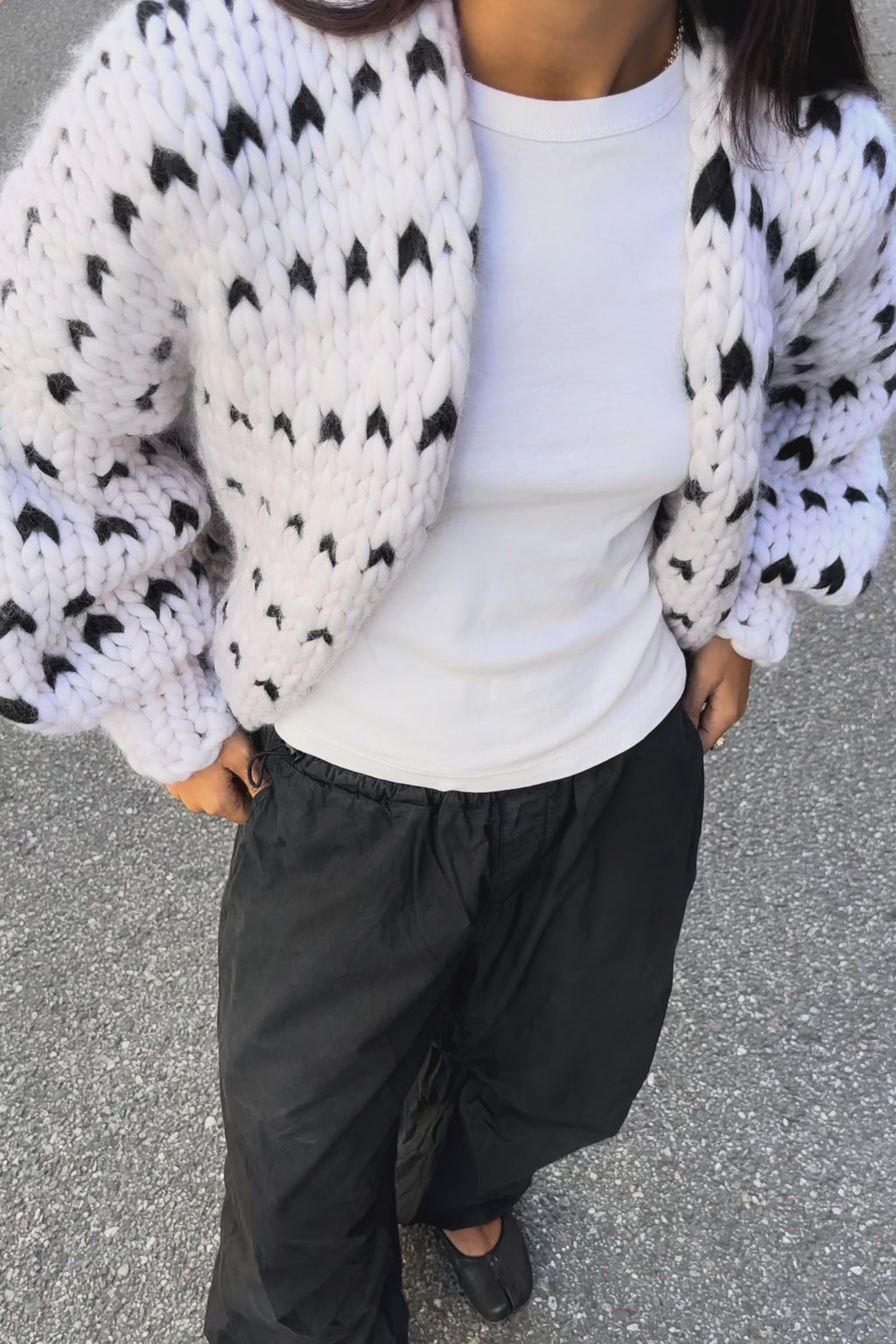 Design details: Our classic chunky knit cardigan with a super cosy oversized fit and our iconic balloon sleeves.